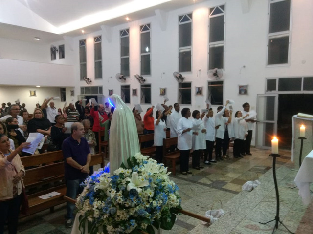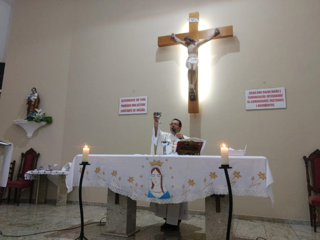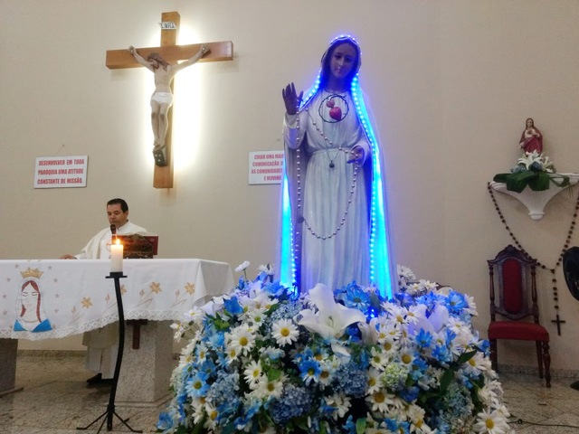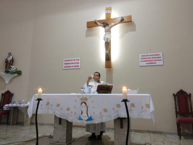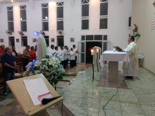 - Logo após a oração do terço tivemos a celebração da Santa Missa, às 19 horas,